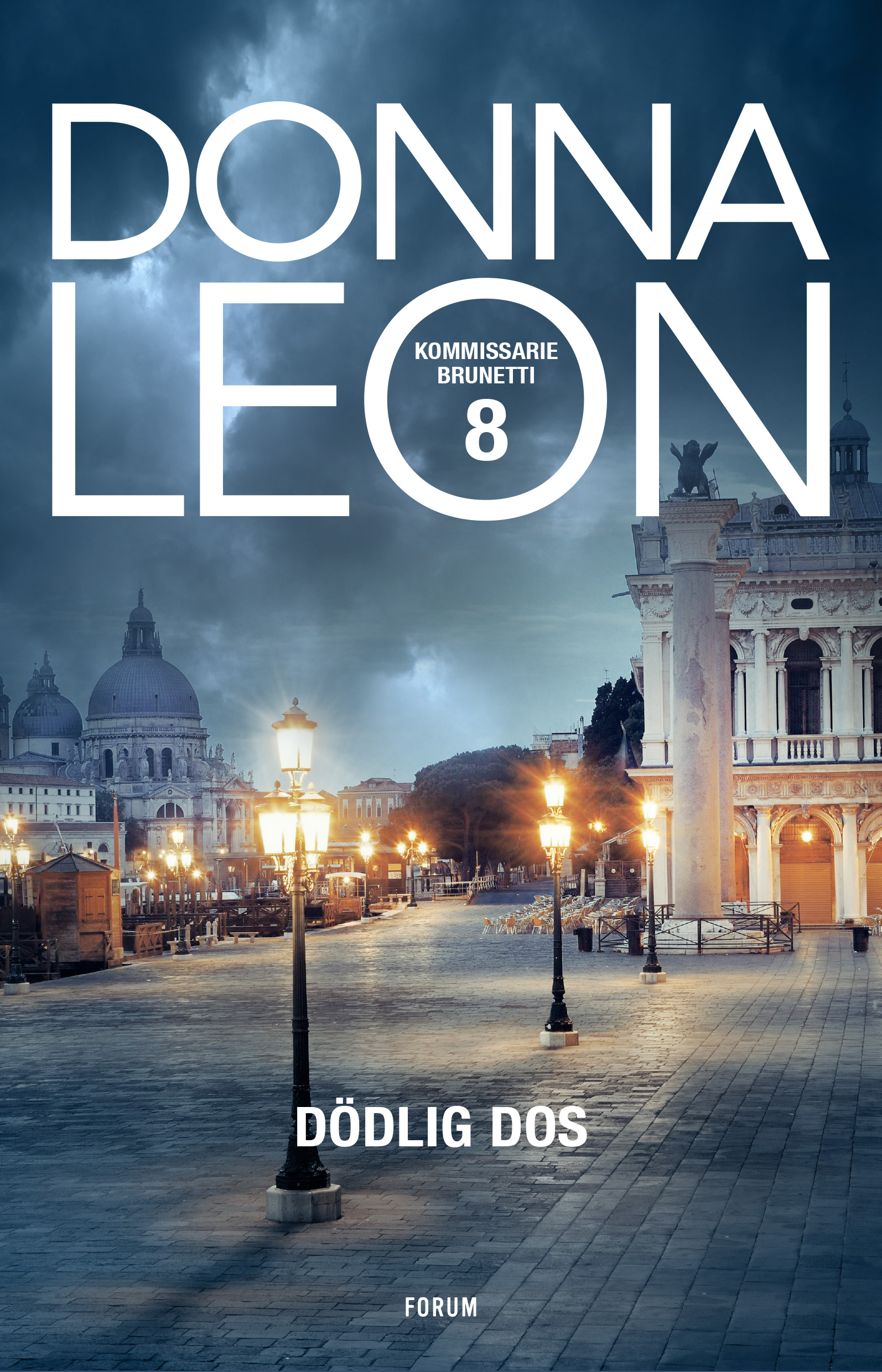 Ingalill Mosander på Aftonbladet träffar helt rätt när hon beskriver kommissarie Guido Brunetti som Europas mest karismatiske kommissarie. Donna Leons böcker om kommissarie Guido Brunetti utspelar sig i Venedig. Omgiven av den venetianska miljön löser Brunetti mordgåtor som för läsaren in i det annars så slutna italienska samhällets nätverk av politiker, maffia och medier. Trots att Brunetti alltid mycket målmedvetet nystar upp sina fall finner han ändå tid att umgås med familjen och att inta utsökta måltider. Och visst är det Donna Leons miljöskildringar från den vackra staden Venedig, scenerna i hemmet med en trivsam blandning av småprat och pastaätande och kommissarie Brunettis drabbningar med den korkade polischefen Patta som gör romanerna alldeles extra läsvärda! Tryggheten hemma hos Brunetti är dock hotad i Dödlig dos. I den kyliga venetianska gryningen krossas ett skyltfönster till en resebyrå och kommissarie Brunetti väcks av ett tidigt telefonsamtal från polisstationen. Brunetti blir ombedd att komma in till stationen, men inte för att utreda vem som haft sönder skyltfönstret utan för att komma och hämta sin hustru, Paola. Till Brunettis stora förvåning befann sig Paola utanför resebyrån när polismännen kom till platsen och hon berättade för dem att det var hon som hade kastat en sten genom skyltfönstret. Paolas oväntade handlande är början till en kris i det Brunettiska hemmet och samtidigt arbetar Brunetti under en stegrande arbetsbörda på jobbet. Han får ansvar för utredningen av ett bankrån med kopplingar till maffian och polisledningen kräver snabba resultat. Brunettis karriär är i fara när Paolas försök att avslöja en konspiration går stick i stäv med de krav Brunetti måste upprätthålla i sitt arbete. Brunetti drivs obevekligt mot en katastrof Donna Leon är född 1942 i New Jersey. Efter sina universitetsstudier följde hon med en klasskamrat till Rom. Efter detta år i Italien följde en tid när Leon flackade runt i världen som lärare i engelsk litteratur, med Jane Austen som specialitet en "legosoldat i litteratur", som hon själv uttrycker det. Leon undervisade i Schweiz, Kina, Iran, Saudiarabien och Venedig, där hon slog sig ner för gott 1981. Donna Leon fick bokkontrakt och är sedan 1992 en väletablerad deckarförfattare i Europa. Hennes böcker ges dock inte ut i Italien då hon vill behålla sin anonymitet. Men Leon får ändå tåla att busslaster med turister kommer till Venedig för att följa i kommissarie Brunettis fotspår.